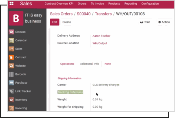 Nach Bestätigung des Verkaufsauftrags werden Versandmethode und Anbieter automatisch im Lieferschein eingetragen.