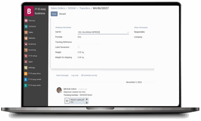 view real-time rates, and manage returns—all from within your ITISeasy ERP environment.
