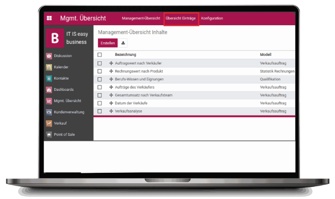 Entdecken Sie unsere Business Intelligence Features Erfahren Sie hier mehr zum ITISeasy.business ERP