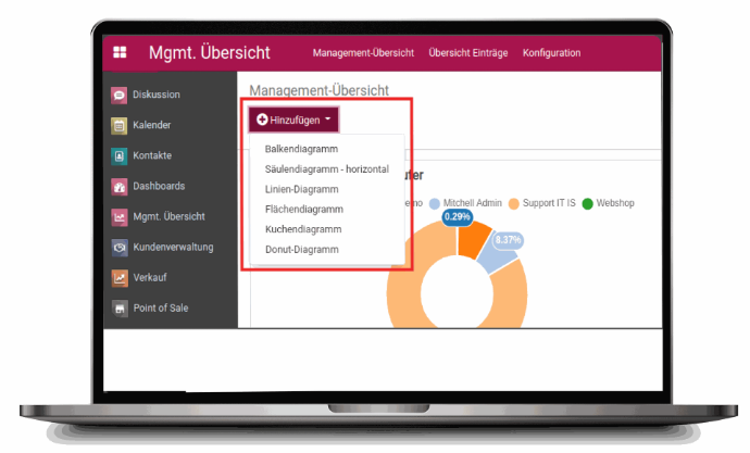Ihre aktuellen Analysen, KPIs und Diagramme werden klar in der Dashboard-Konfiguration dargestellt.