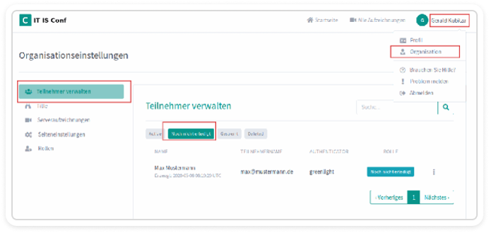 If you’re an administrator, click your username in the top-right corner and select Organization.