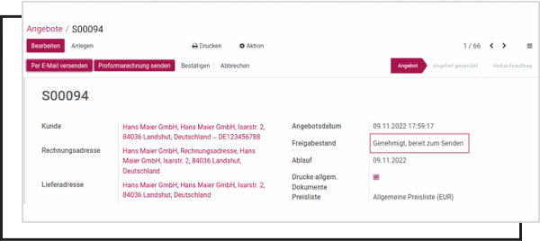 Once a quotation is finalized and meets the workflow criteria: